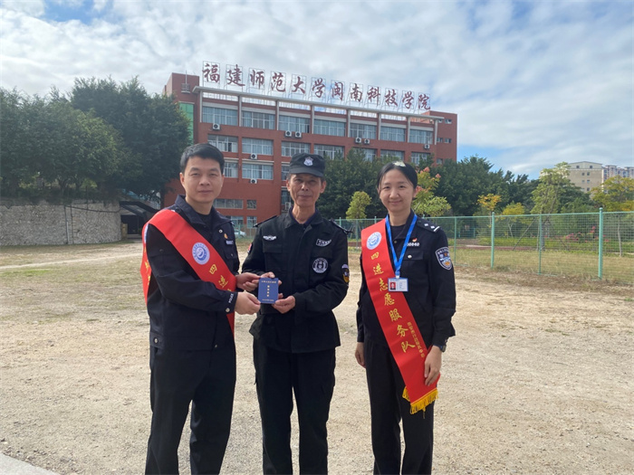 中国网福建讯 11月19日上午,南安市公安局治安管理大队副大队长陈润生带领驻行政服务中心窗口民警积极开展“四进”服务,将两本沉甸甸的保安员证送到了保安员李金坦、许百溪手中。