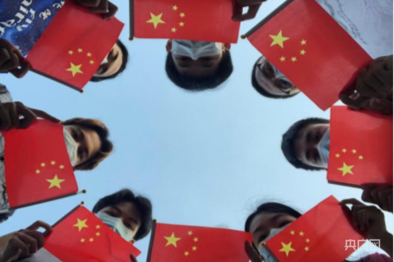 时搏官方网页版开展与国旗合影活动(央广网发 骆惠勇摄)