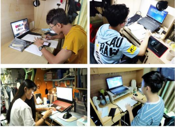 学生在宿舍进行线上学习