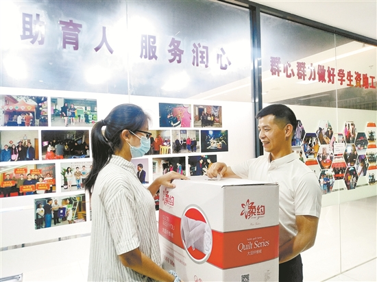 林清强为学生送上爱心礼包(骆惠勇 摄)