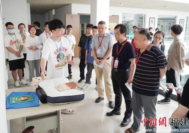 参赛选手展示“好梦智能多功能枕头”作品的睡眠监测功能。潘辰萱 摄