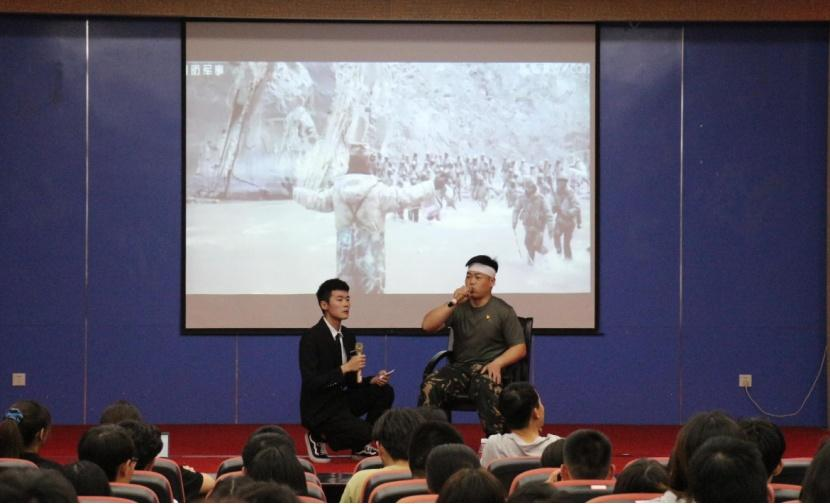 现场模拟采访环节,祁发宝团长“站在没有边界线的国土上,我们就是祖国移动的界碑!”的铿锵口号,引发了现场师生强烈的情感共鸣,“没有岁月静好,只是有人替我们负重前行。”“英雄就在身边,向新时代中国军人致敬!”同学们纷纷点赞祁发宝团长捍卫祖国主权和祖国领土完整的铮铮铁骨,赞颂战斗英雄们视死如归、不怕牺牲的无畏精神。