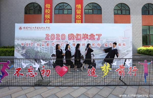 骆惠勇摄毕业生在展板前留下青春最美回忆