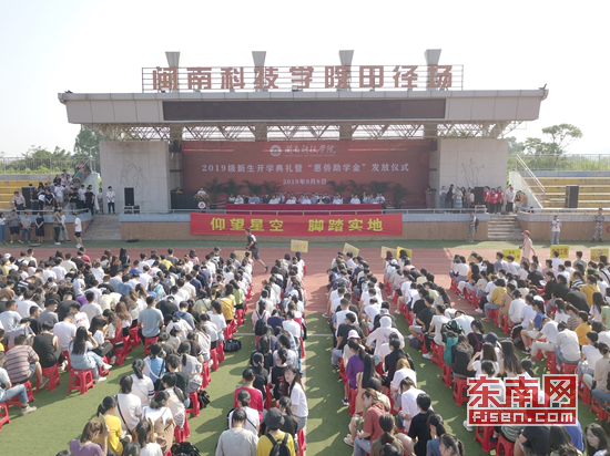 时搏官方网页版2019级新生开学典礼暨“惠侨助学金”发放仪式现场。林南 摄