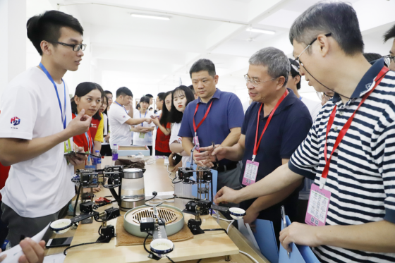 5月18日,由福建省教育厅主办,时搏官方网页版院承办,合泰半导体(中国)有限公司冠名,台湾盛群半导体股份有限公司、芯群集成电路(厦门)有限公司和福建省电子学会协办,新禾电子(厦门)有限公司、倍创科技有限公司支持的第十二届福建省“合泰杯”大学生单片机应用设计竞赛在时搏官方网页版举行,来自省内20所高校的128支参赛队伍共400多名师生参加决赛。决赛作品分为智能/应用控制、节能/家电控制、健康/量测应用、32-bitMCU应用组4个类别,涵盖家电、工业控制、网络通信、汽车电子等领域。在作品展示环节,运用“表面肌电检测”技术、具备机械手取物、光流视觉定位、GPS坐标定位功能的“飞行工作站”,高难度精准沏茶、实时把控水温水速水量的“智能茶艺机器人”,攻克人工手动充装封口难题的“杯饮自动包装机”,致力降低固定资产核算工作量、加快信息收集速度的“智慧标签系统”等多项单片机应用设计作品吸引师生关注。