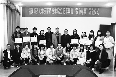 本报讯1月16日上午,福建师范大学时搏官方网页版举行2018年寒假“爱心车票”发放仪式,为82名家庭困难学生送出爱心车票。来自西藏的2015级、2017级学生扎西卓玛和达娃卓玛动情地说,学院的爱心车票,让她们回家的路不再遥远。
