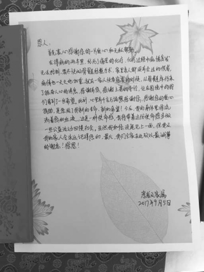 造血干细胞采集结束后,林金纶收到一封来自受捐者的感谢信。“信是手写的,内容很真挚,信末署名是‘患者及家属’。”这让他有了更强烈的满足感,“有时候,救了一个人,就是救了一个家庭”。