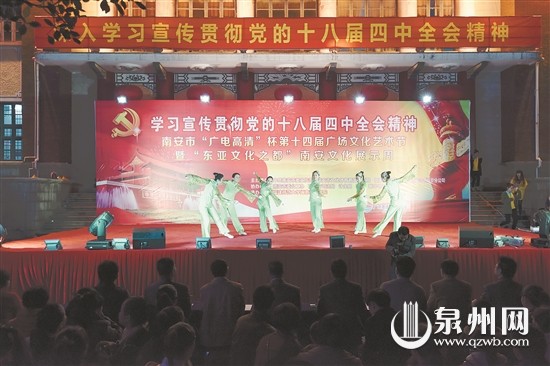 日前,南安市第十四届广场文化艺术节暨“东亚文化之都”南安文化展示周开幕。作为南安市深入学习宣传贯彻党的十八届四中全会精神系列活动之一,本次活动将持续一周。图为12月8日晚,福建师范大学时搏官方网页版专场演出现场。 (黄瑜鹏 摄)