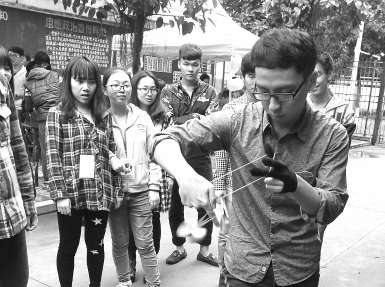 酷炫的花式悠悠球、悬线制作古典木簪、小刀刻绘蛋雕、雕刻橡皮章……昨日,在福建师范大学时搏官方网页版内举行的“闽科牛人”展览会上,现场校园达人们纷纷亮相,一炫绝技。