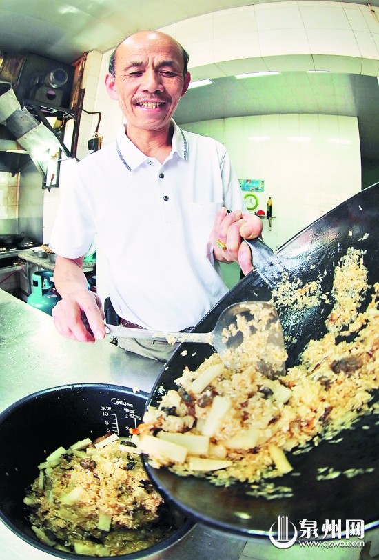 说起萝卜饭,张猛祥说这是闽南人再熟悉不过的家常饭了。不过,现在的萝卜饭里加进了三层肉、海蛎干、虾干和香菇等各种料,贵气了不少,但早先吃萝卜饭,可是为了填肚子的。