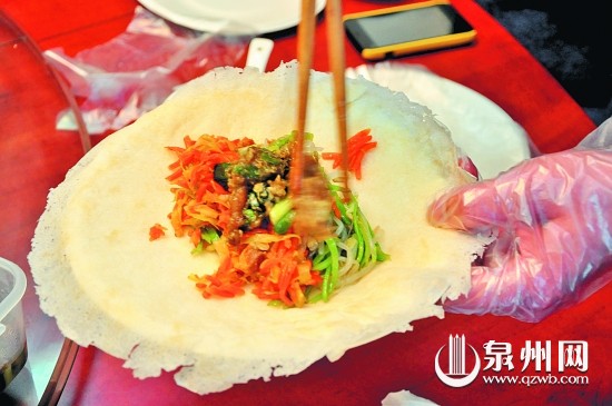 本报讯(记者黄雅珊)刚刚过去的清明节,若是泉州人就会知道,在这个传统节日里,除了扫墓祭奠缅怀先人外,还有一个很重要的习俗——吃润饼菜。如今,润饼菜搭着《舌尖上的中国》这个平台上了央视,在全国露脸,这就不得不让人再来回味一下这道“古早味”。