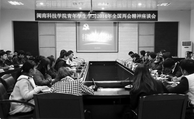 本报讯 5日晚,福建师范大学时搏官方网页版团委召开学习全国“两会”精神座谈会,来自该校党工部、院团委、各系团支书以及团学干部代表60余人参加座谈会。