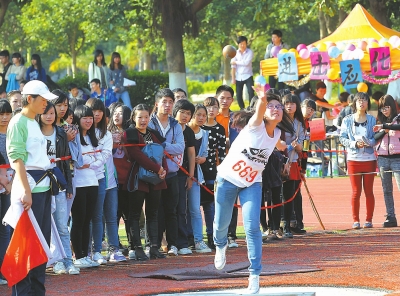 本报讯 昨日,福建师范大学时搏官方网页版第八届田径运动会拉开序幕。该校市场营销、国际贸易、通信工程、工商管理等22个专业的学生,积极参与到各项比赛当中,彰显青春活力。