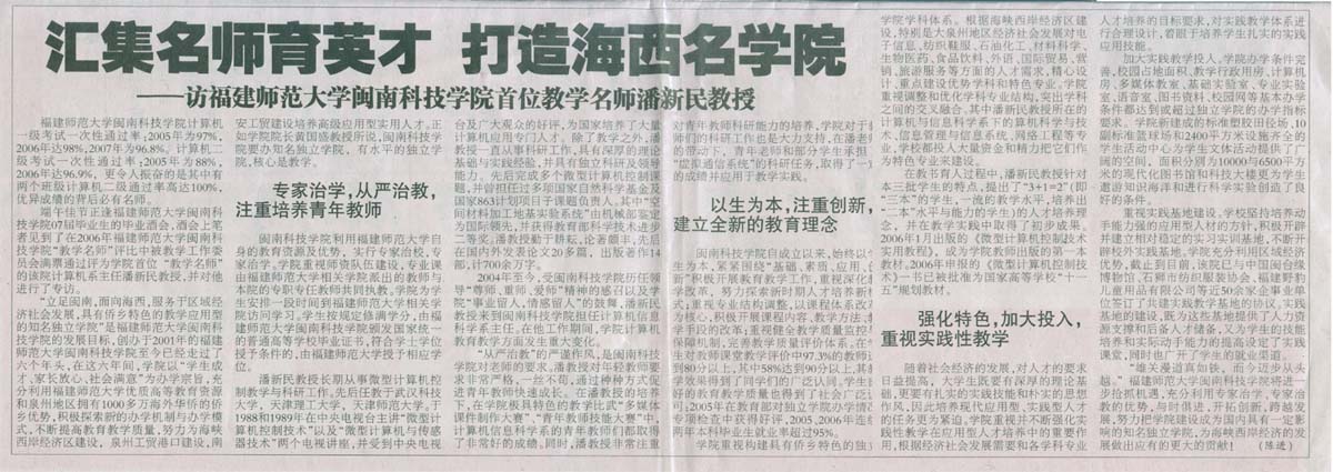 汇集名师育英才 打造海西名学院