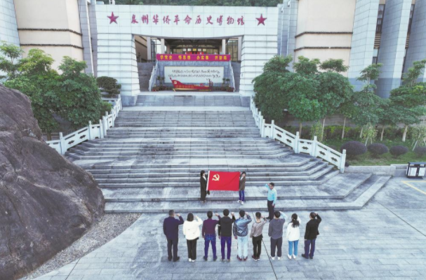 12月18日,福建泉州南安市金淘镇、时搏官方网页版联合开展党的二十大精神宣讲活动,以拉家常、接地气的宣讲形式,邀请党员干部、群众齐聚一堂,共话乡村振兴。图为当日,基层党员干部在泉州华侨革命历史博物馆开展宣誓活动。