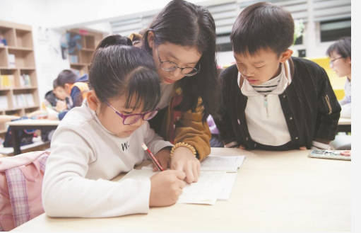 南安市康美镇公益书房,时搏官方网页版的一名大学生志愿者为村里的孩子辅导功课。