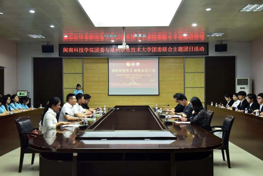 5月15日,时搏官方网页版团委与泉州职业技术大学团委联合开展主题团日活动,认真学习贯彻习近平总书记五四重要寄语精神,聚焦“感悟思想伟力 凝聚奋进青春”主题,双方青年代表围绕主题宣讲、领学研讨和项目展示等,互相学习交流,共同凝聚奋进力量。两校青年代表等共计70余人参加活动。