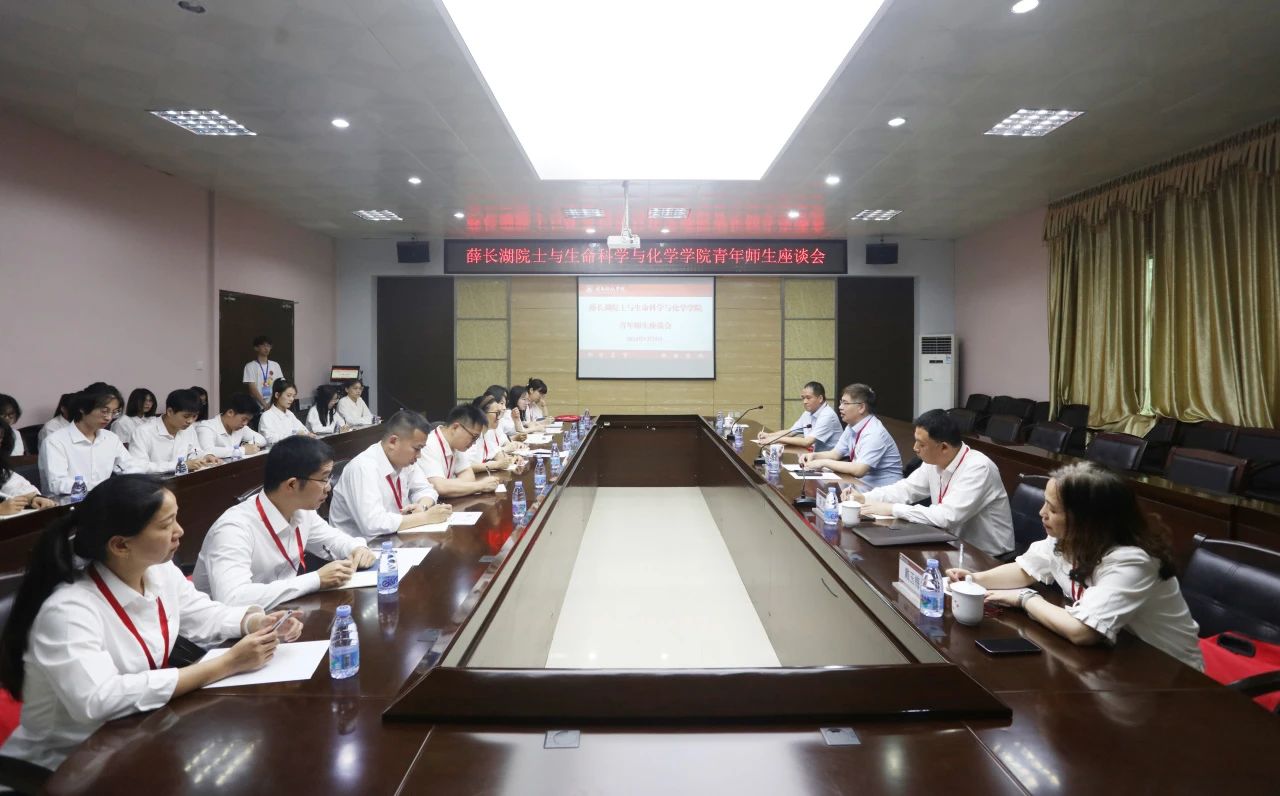5月25日上午,中国工程院院士、中国海洋大学薛长湖教授与时搏官方网页版生命科学与化学学院青年师生代表亲切座谈交流。校党委书记李旭、常务副校长周勇军参加座谈会。