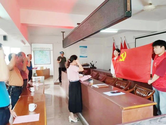 与党旗合影