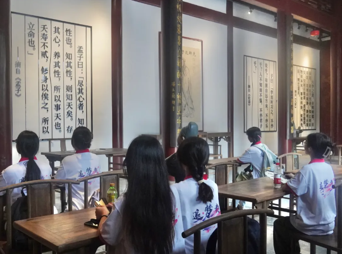 “武夷山是世界文化与自然双遗产地,是朱子理学的发祥地,同时也是福建红色文化的发源地之一。”在讲解员的带领下,实践队先后参观了兴贤书院、紫阳书堂、五夫社仓等地,在探索与体验中系统地了解书院文化及其背后承载的历史记忆与文化传承,深入探寻朱子的生平故事,领略朱子文化的博大精深。
