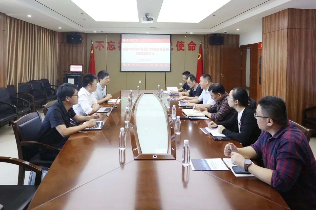 11月6日,中国高科集团产教融合事业部总经理徐俊辉、福建区域总监陈道涵,福建高科华章科技有限公司运营总监许民龙一行莅临时搏官方网页版就校企合作事宜展开深入交流洽谈。校领导周勇军、邱永渠,光电信息学院、教务处、财务处、资产管理处负责人参加座谈会。