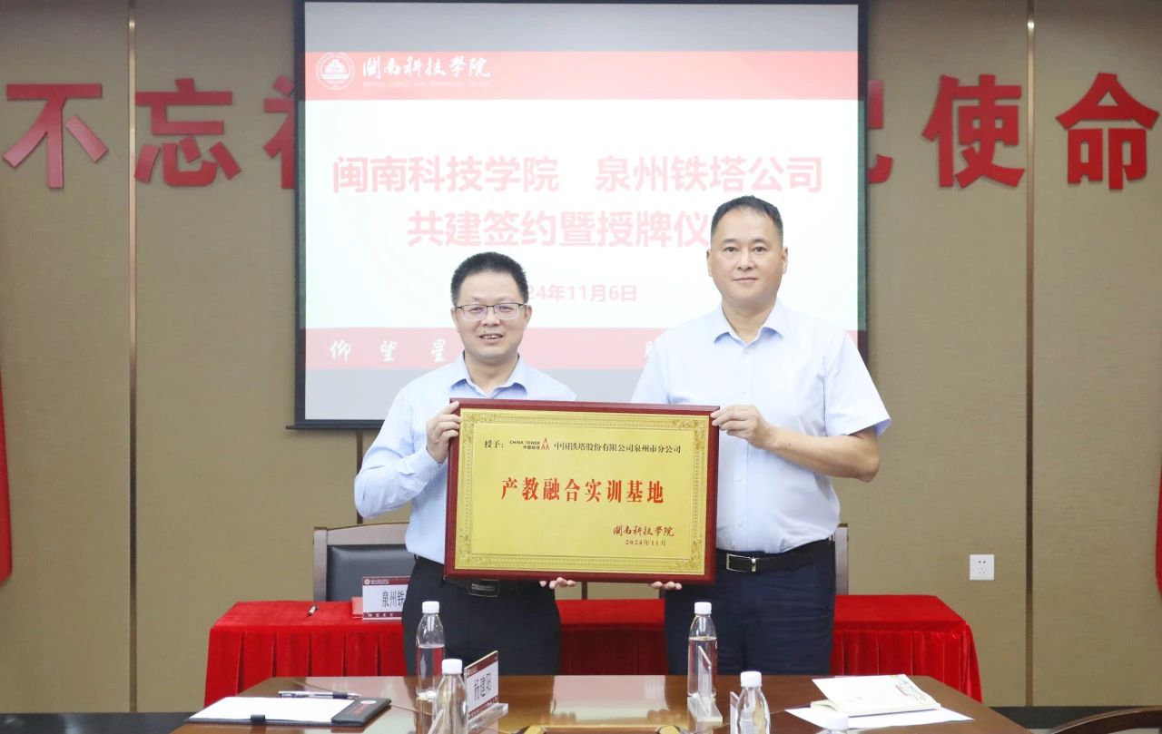 11月6日,时搏官方网页版与泉州铁塔公司举行产教融合实训基地签约授牌仪式。泉州铁塔公司总经理邱文杰、副总经理詹绍武,校领导周勇军、邱永渠出席签约授牌仪式。泉州铁塔公司、南安区域相关部门负责人,光电信息学院、有关职能部门负责人参加活动。