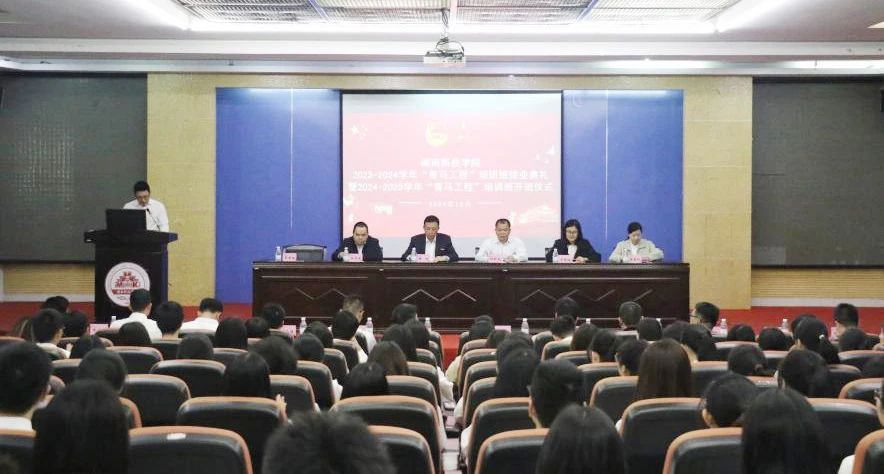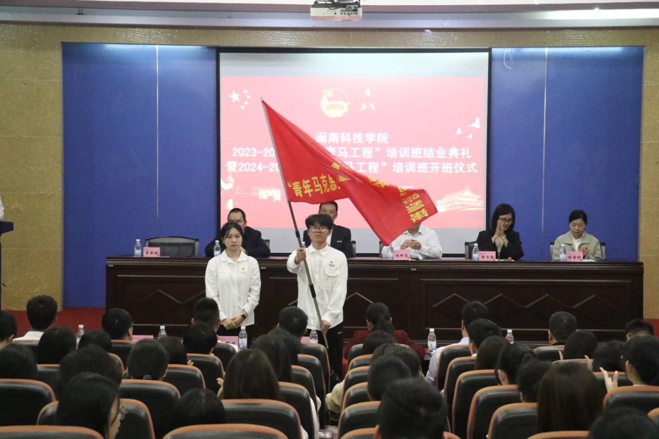 12月11日下午,时搏官方网页版举行2023-2024学年“青马工程”培训班结业典礼暨2024-2025学年“青马工程”培训班开班仪式。校领导李旭、林树生,宣传部、教师工作部、二级学院党组织负责人、马克思主义学院、校院专兼职团干部和“青马工程”培训班学员等参加开班仪式。