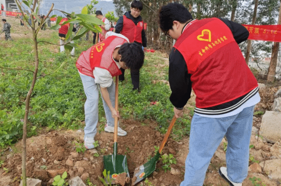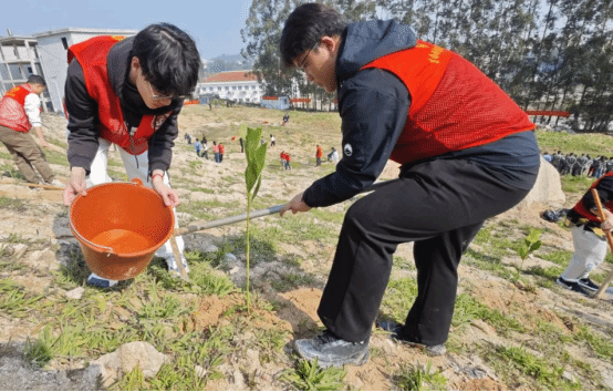3月11日,商学院学生第三党支部开展“同植初心树,共铸商院魂”主题党日活动。13名师生党员联合兰田村干部群众,有序完成挥锹铲土、扶苗填坑、提水浇灌,一起种下成片希望的小树苗,彰显青年大学生的社会责任感和使命感,推动环保理念与奉献精神在实践中生根发芽。
