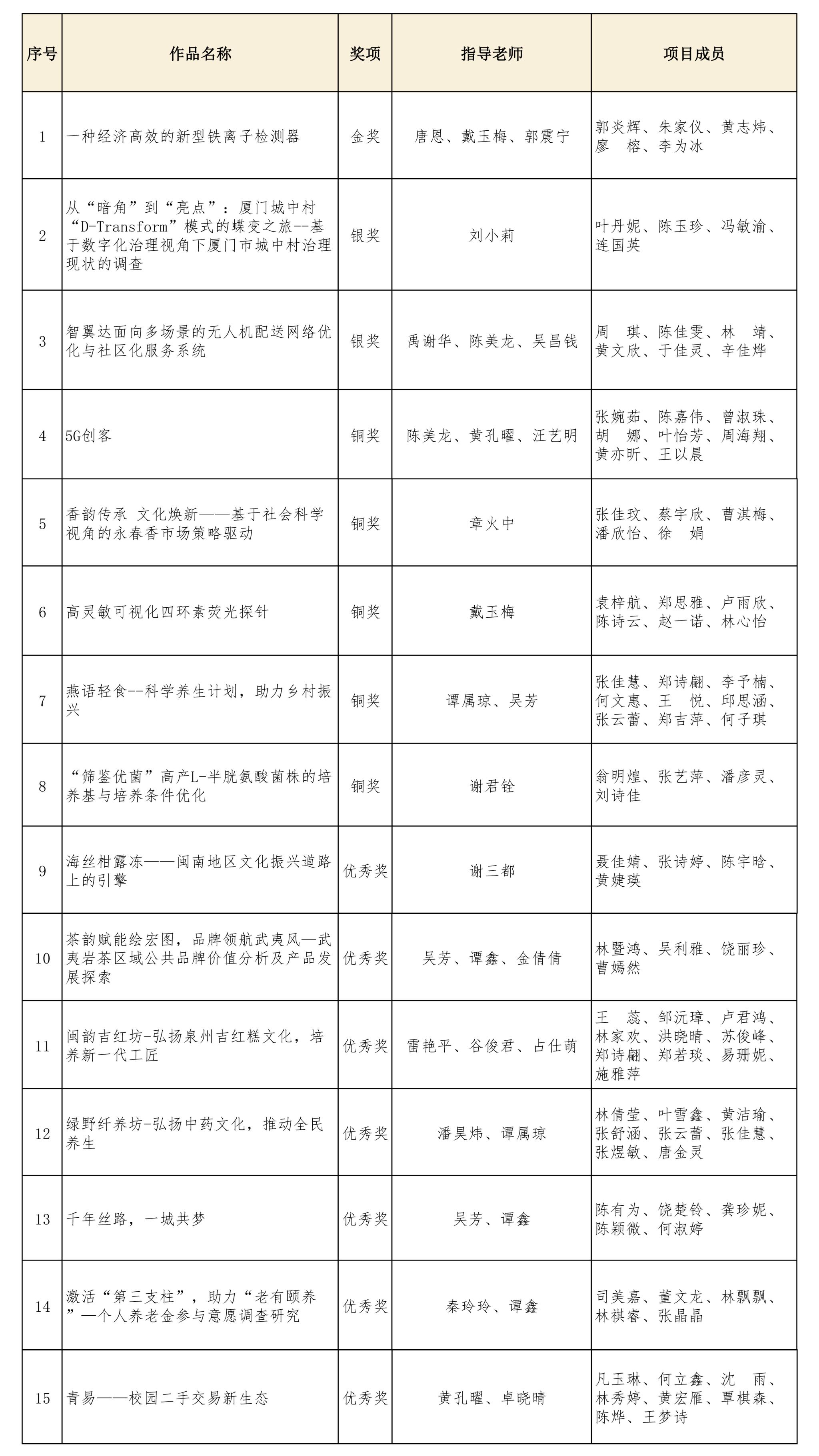 时搏官方网页版 2025年“挑战杯”大学生课外学术科技作品竞赛获奖名单