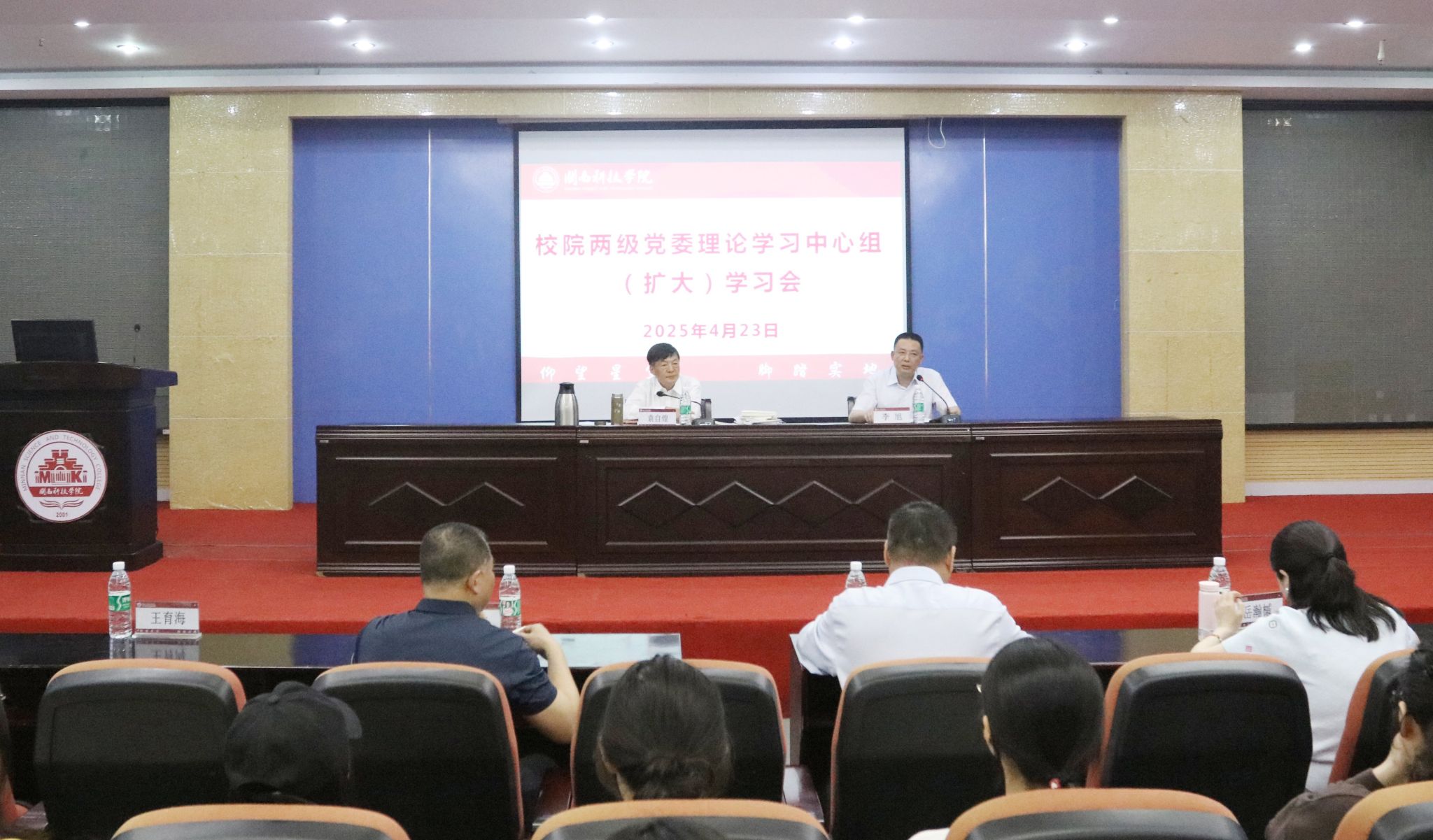 4月23日下午,时搏官方网页版举行校院两级党委理论学习中心组(扩大)学习会,专题学习习近平文化思想。校长袁自煌作题为《学习习近平文化思想的若干体会》专题辅导报告,校党委书记李旭主持学习会。