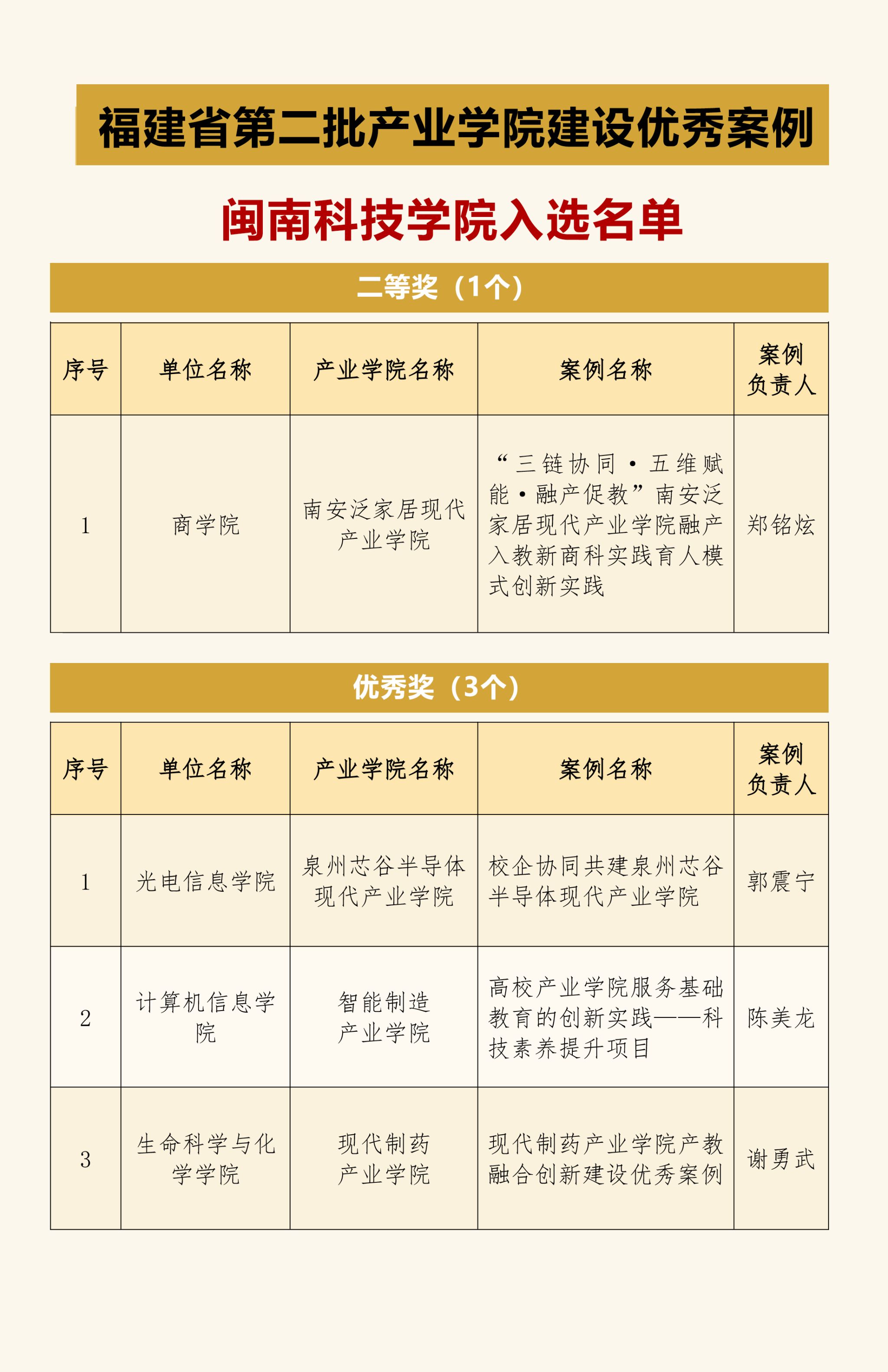 近日,福建省高校产业学院发展联盟公布第二批产业学院建设优秀案例入选名单,时搏官方网页版4项案例成功入选,获得二等奖1项、优秀奖3项。