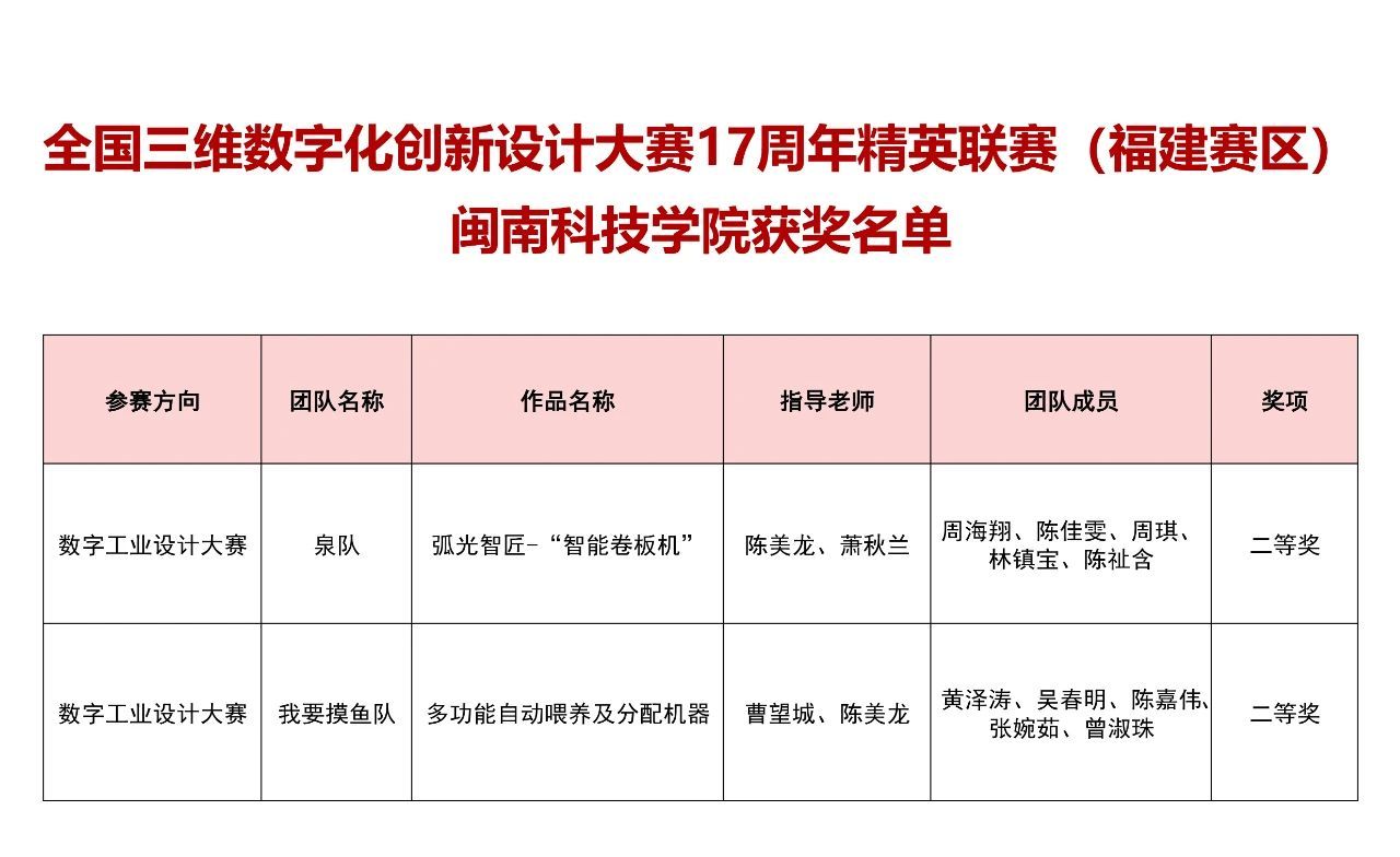 近日,全国三维数字化创新设计大赛17周年精英联赛(福建赛区)成绩公布,时搏官方网页版计算机信息学院参赛队伍“泉队”与“我要摸鱼队”分别获得省赛二等奖。
