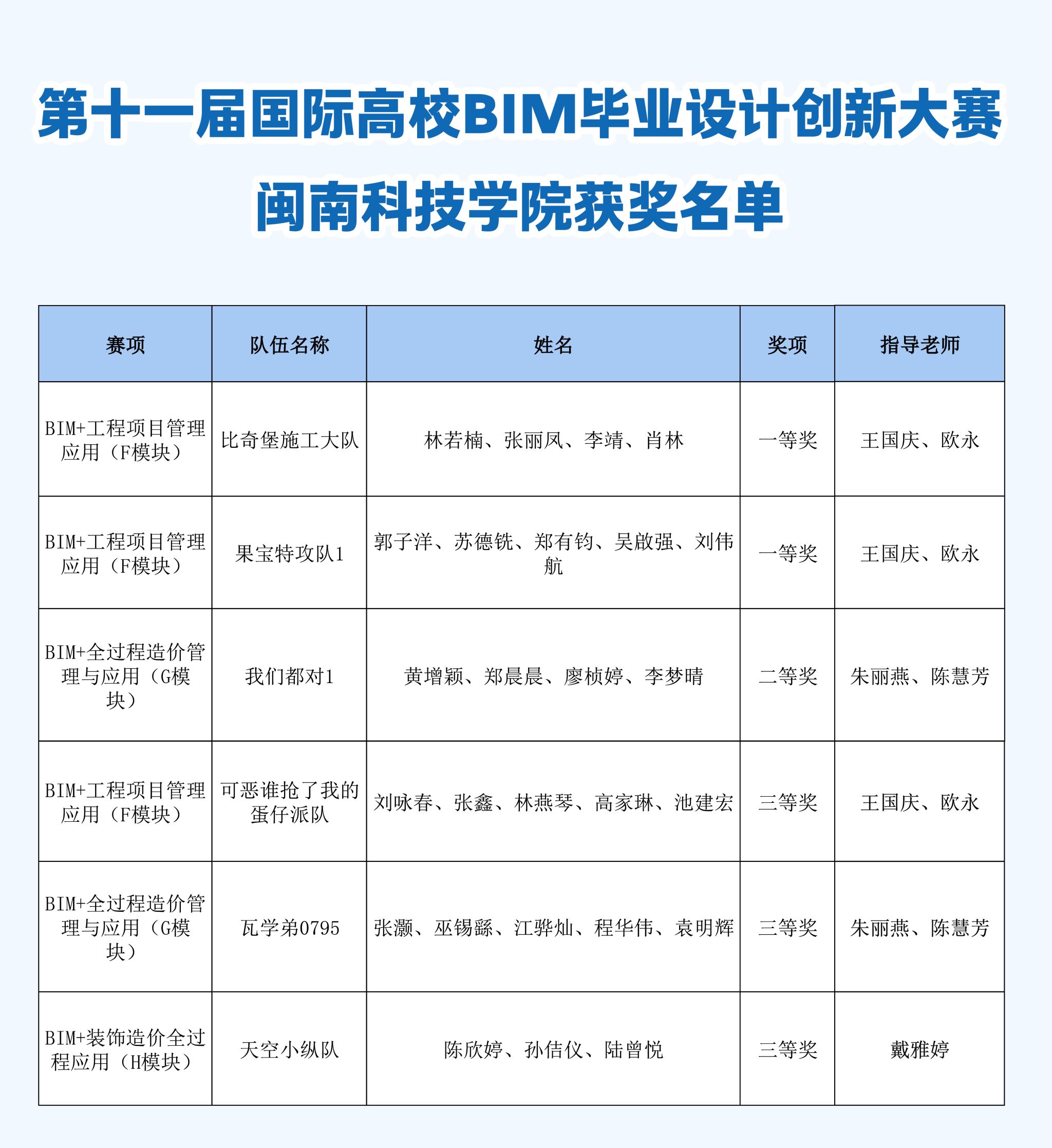 近日,第十一届国际高校BIM毕业设计创新大赛总决赛圆满结束,时搏官方网页版土木工程学院参赛队伍获得一等奖2项、二等奖1项、三等奖3项的好成绩。