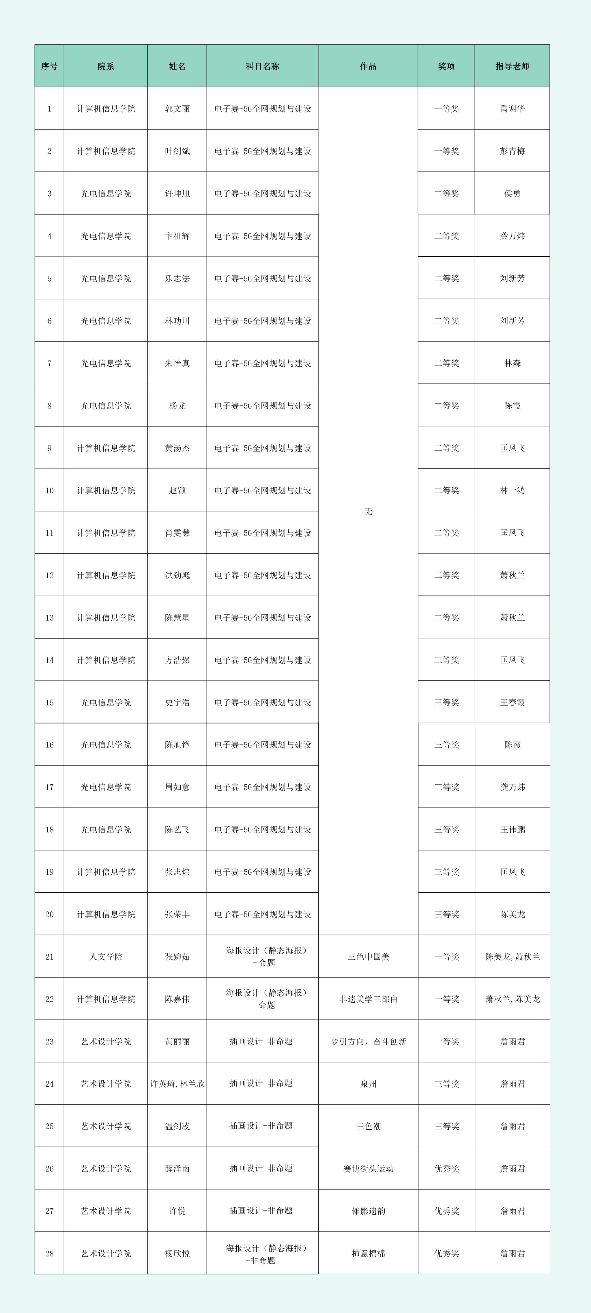 获奖名单