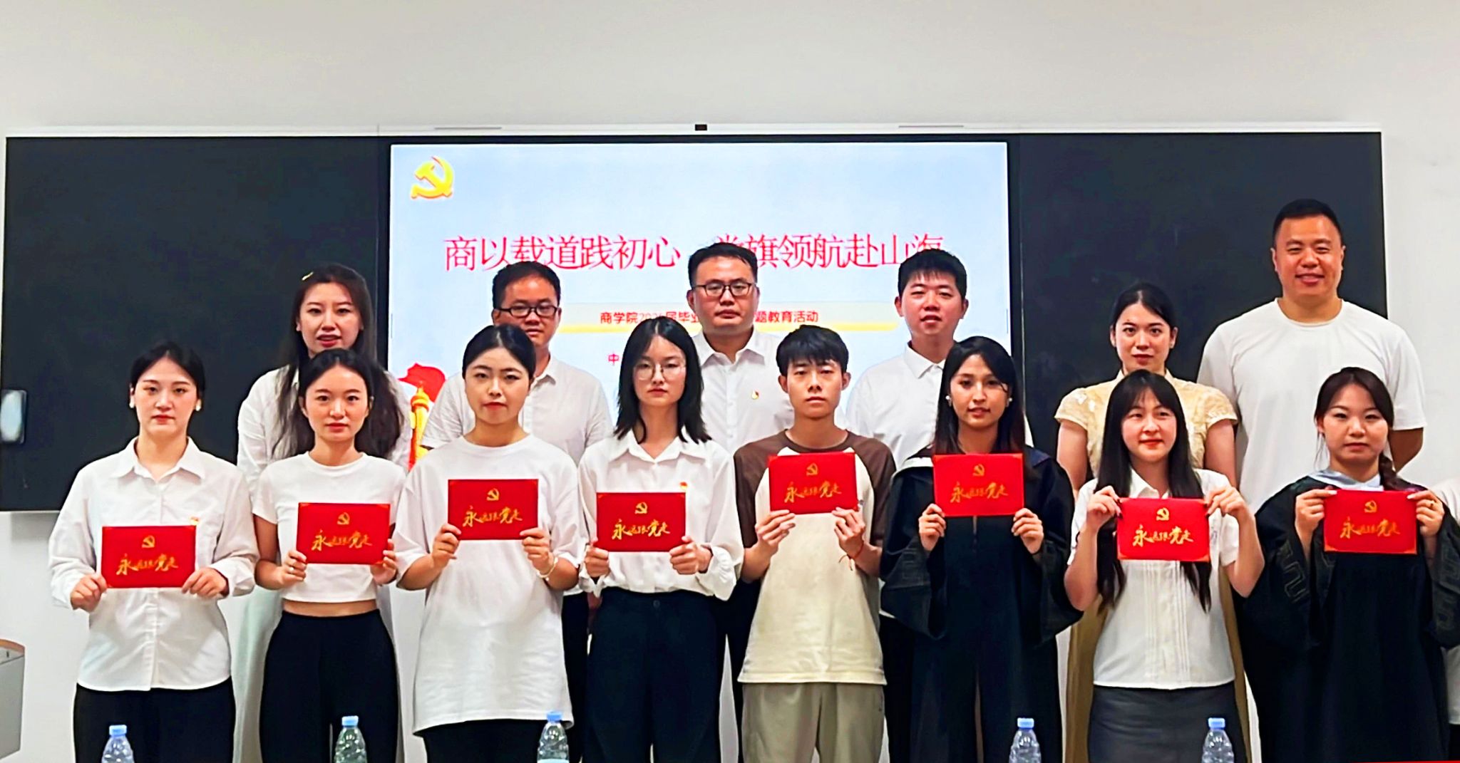 6月15日上午,商学院党委组织开展“商以载道践初心 党旗领航赴山海”2025届毕业生党员主题党日活动,通过一堂生动的“毕业党课”、一次庄重的“政治生日”、一次铿锵的“誓词重温”、一场务实的“志愿服务”、一次温暖的“捐赠仪式”等方式,引导广大毕业生党员站好“最后一班岗”,树旗帜、当标杆,不负韶华、逐梦山海,书写新时代青年的奋斗篇章。