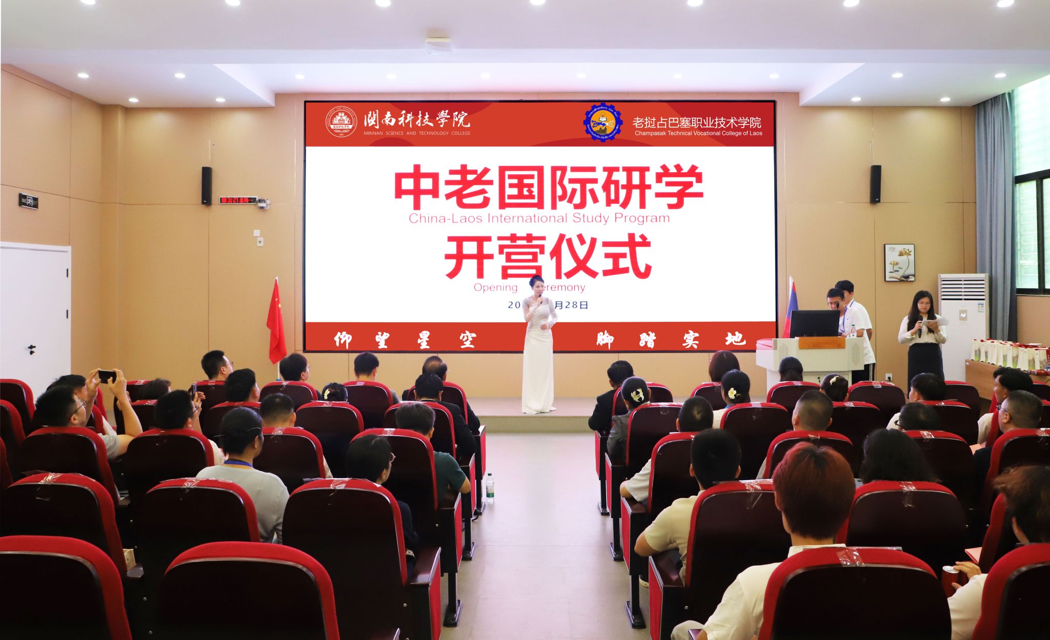 出席今天开营仪式的还有来自国内外的多方代表:老挝占巴塞职业技术学院师生代表团专程参与;泉州师范学院、南安市第三小学、南安市创石科创服务有限公司等合作单位代表应邀出席;时搏官方网页版与会人员包括相关职能部门负责人、各二级学院党政负责同志,以及师生代表、工作人员和学生志愿者团队等。