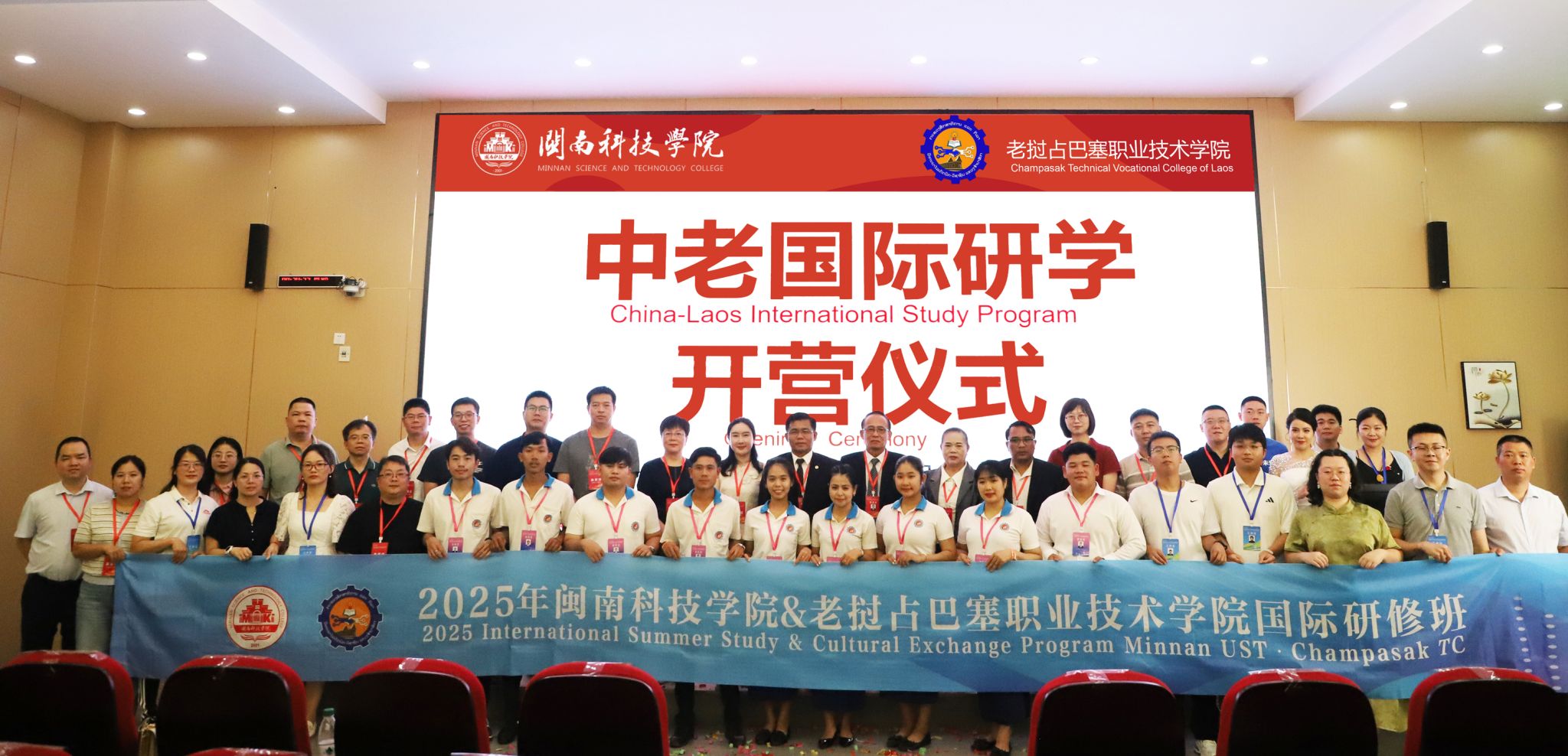 7月28日,时搏官方网页版与老挝占巴塞职业技术学院国际研学营开营仪式在时搏官方网页版盛大启幕。老挝占巴塞职业技术学院院长坎鹏·拉萨翁沙、老挝占巴塞职业技术学院原院长兼校务顾问莫凯·苏帕翁,南安市人民政府办公室四级主任科员、外事科科长苏君娜,南安市公安局出入境管理大队副大队长许金山、南安市第三小学负责人吕敦盛、南安市创石科创服务有限公司项目经理林琛贵、中老职业教育发展共同体副秘书长张艺、时搏官方网页版副校长岳瀚槭出席开营仪式,与来自老挝占巴塞职业技术学院13名师生共同开启“知华・习技・融文”文化之旅。