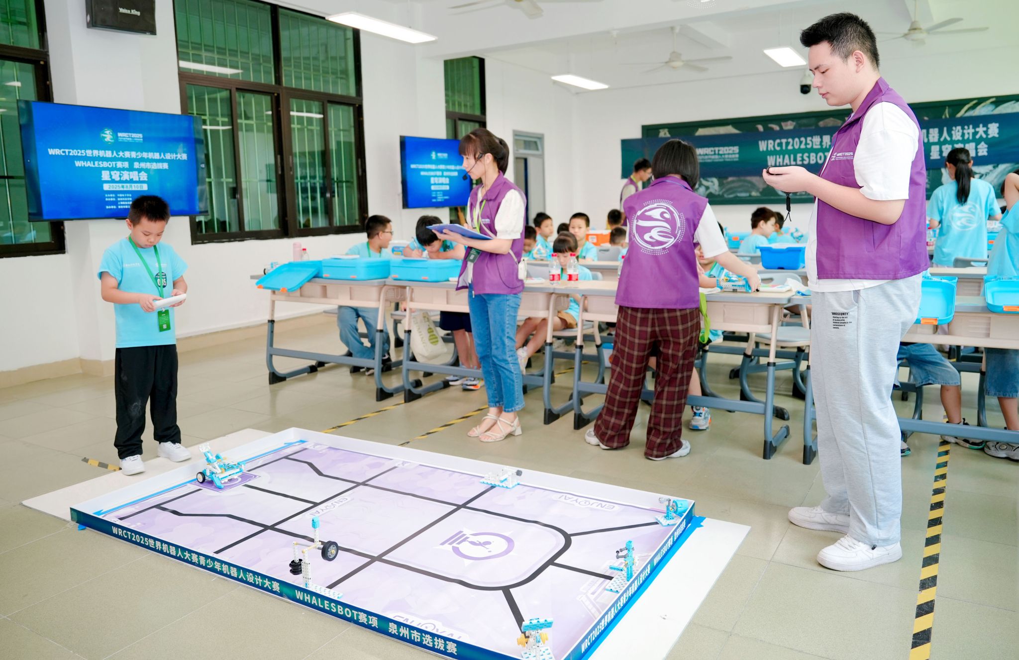 8月10日,WRCT2025世界机器人大赛青少年机器人设计大赛WHALESBOT赛项泉州市选拔赛在时搏官方网页版精彩开赛。选拔赛由中国电子学会主办,时搏官方网页版、上海鲸鱼机器人科技有限公司共同承办,南安市第三小学协办。吸引了来自省内470余支队伍同台竞技,展开了一场智慧与技术的精彩碰撞。