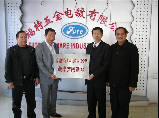 3月4日上午,我院副院长肖华山教授和教务部张永祥主任驱车前往石狮市福特五金有限公司参加教学实践基地的挂牌仪式。石狮市福特五金有限公司电镀厂是福建知名的电镀厂,该企业为富贵鸟、奥康等众多国内知名企业厂家的产品进行电镀加工。此次挂牌作为时搏官方网页版教学实践基地之一,不仅能够给我院生化工程系的学生提供教学实践场所,同时也促进我院与企业合作教学。