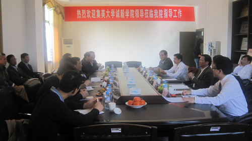 12月12日,集美大学诚毅学院在常务副院长、党委副书记郑力强的带领下一行15人莅临时搏官方网页版指导工作。学院院长郭丹,党委常务副书记林国庆、党委副书记陈振祯、副院长肖华山、副院长周勇军等进行了热情接待,并于学院第一会议室举行交流会。