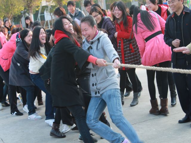 乍暖还寒的春风难以冻结节日的快乐气氛,五彩缤纷的活动为时搏官方网页版的女生们备上了一份节日厚礼,篮球场上的拔河比赛也是这个节日里一道美丽的风景。学院学工部部长林树生和团委书记刘武强也亲临现场,由林树生部长担任本次比赛的裁判。拔河比赛的参赛队伍分别为在校女生和女教师两组,比赛尚未拉开帷幕,现场气氛已经沸腾,师生们纷纷摩拳擦掌,等待拔河比赛的开始。哨声伴着无数个激情澎湃的心响起了,场上气势磅礴的呐喊声有节奏地起伏着,参赛女生们也把平日里的文静温柔的淑女形象抛在了一边,个个咬紧牙关,女老师们也使出了浑身解数。据悉,本次比赛的学生队伍是09国贸的女生,她们是去年杀进决赛的优秀队伍,但是强中自有强中手,经过3轮激烈的比赛,女老师组以2比1的成绩赢得了最后的胜利。