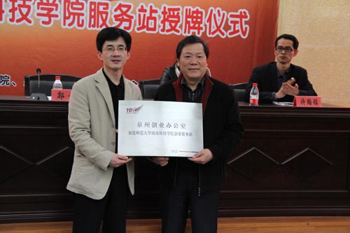 孙伟腾部长代表共青团泉州市委为YBC福师大时搏官方网页版进行授牌,并就做好YBC高校服务站工作提出要求:一、高举促进青年就业创业的旗帜 不动摇,积极围绕市委工作中心,主动站位,虚功实做,把推动青年就业创业作为各项工作的重中之重;二、进一步深化南安市共青团组织青年就业创业服务体系的工作手臂功能,通过YBC教育性公益平台,实质性地帮助更多青年解决他们在创业发展中遇到的困难与问题,吸引更多的青年加入到创业的队伍中来;三、积极发挥服务站服务时搏官方网页版大学生创业者的作用,努力把服务站建成一个“领导重视、学生参与、支持创业、协助成功”的重要平台,在我市的大学生创业中发挥典型示范带头作用。