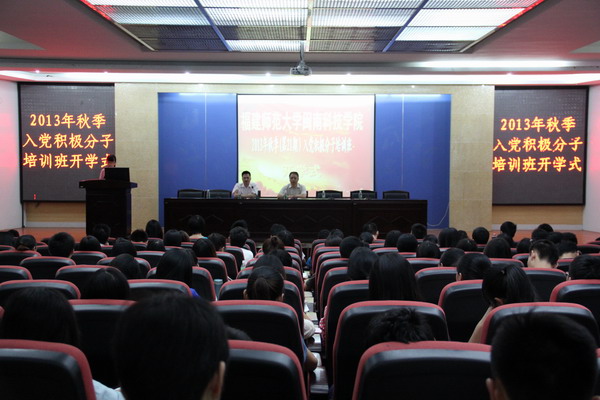10月16日下午,中共福建师范大学时搏官方网页版委员会分党校2013年度秋季(第二十一期)入党积极分子培训班开学式在图书馆学术报告厅举行。院党委常务副书记、分党校校长林明旭,党委副书记、分党校副校长李彬源,全体辅导员以及培训班全体学员出席了开学式。开学式由李彬源主持。