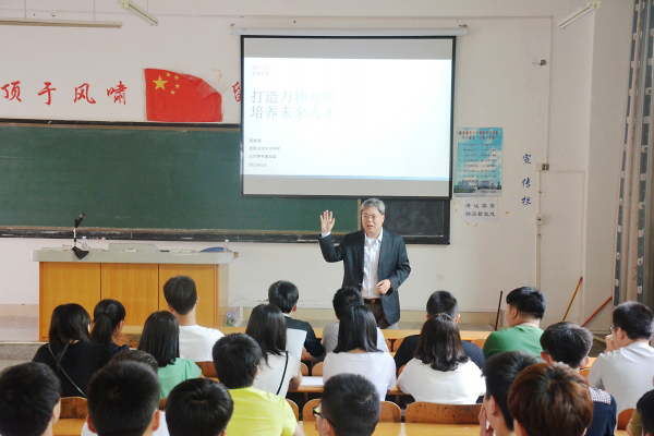 5月13日,“时搏(中国)_时搏(中国)”邀请思科公司大中华区公共事务部总监练沛强作了题为“打造万物互联,培养未来人才”的讲座。讲座由教务部副主任刘标主持。
