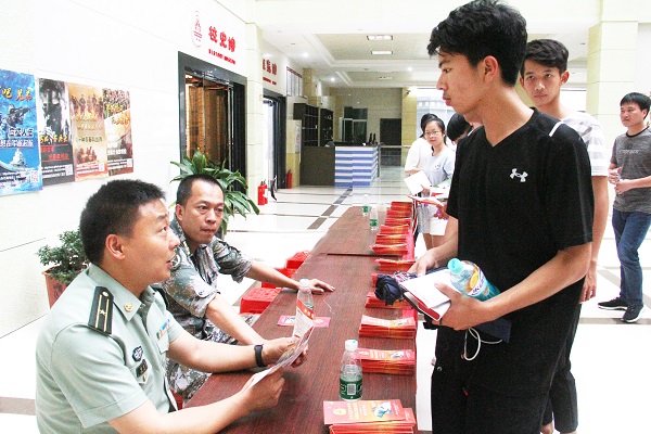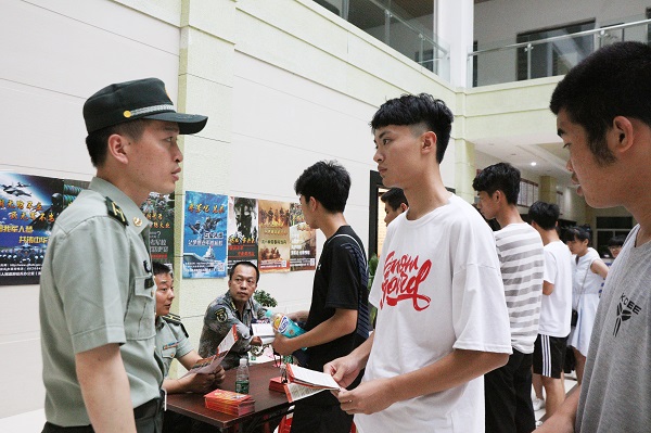 会场外,专设大学生应征入伍政策咨询点和宣传栏,向大学生发放征兵宣传材料,泉州市征兵办、南安市征兵办和时搏官方网页版部分退役复学的学生现场为前来咨询的同学答疑解惑,对大学生应征入伍流程指南、入伍大学生学费补偿助学贷款代偿申请流程、高等学校学生应征入伍服义务兵役国家资助办法、退役大学生士兵复学政策等问题进行了耐心解答。