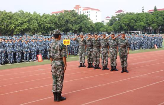 承训部队带队领导分别致辞,他们表示,一要提高思想认识,以高度的责任感和强烈的责任心,把军训当成一次重大的政治任务来完成,向祖国七十华诞献礼。二要提高训练标准,科学计划,周密组织,严格训练,确保同学们掌握基本军事知识和技能。三要夯实安全基础,严格遵守各项安全制度和条例,确保军训全程不出任何安全问题。他们希望同学们牢记“国家兴亡,匹夫有责”“家国同运,筑梦同行”,做到学习不忘爱国,成才不忘报国。