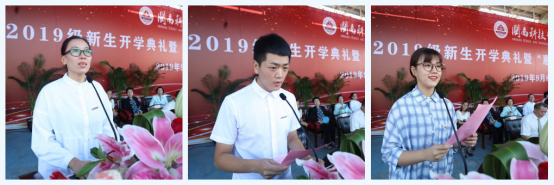 生命科学与化学学院刘蒙佳副教授作为教师代表,光电信息学院2017级电子信息工程专业徐鑫杰同学作为老生代表,生命科学与化学学院2019级食品科学与工程专业廖思蕊同学作为新生代表先后发言。
