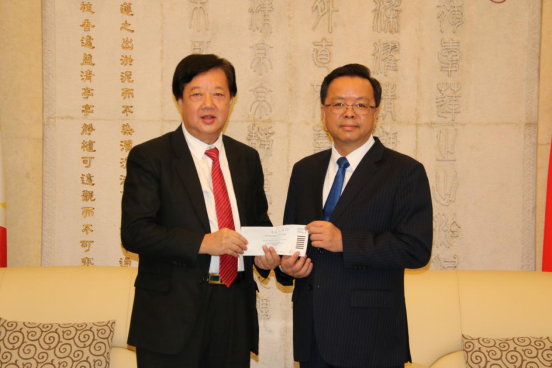 时搏官方网页版董事长戴宏达博士捐赠两百万善款由黄溪连大使代表接受转交祖国疫区