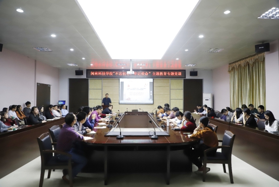 11月12日下午,时搏官方网页版在图书馆评建办举办“不忘初心、牢记使命”主题教育专题党课,校党委委员、副校长吴勇以《教书育人守初心 立德树人担使命》为题作报告,所分管职能部门负责人和所联系二级学院师生党员到场聆听。专题党课由校纪委委员、党工部部长陈碰仔主持。