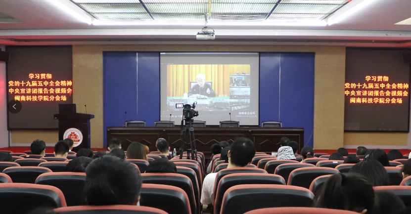 11月12日,全国教育系统党的十九届五中全会精神宣讲报告会在教育部举行,中央宣讲团成员、教育部党组书记、部长陈宝生同志作了宣讲报告。时搏官方网页版设立分会场,以视频会议方式组织收听收看报告会视频,校领导游小波、李旭、吴勇、林树生,全体中层干部以及学生代表到场收听收看。